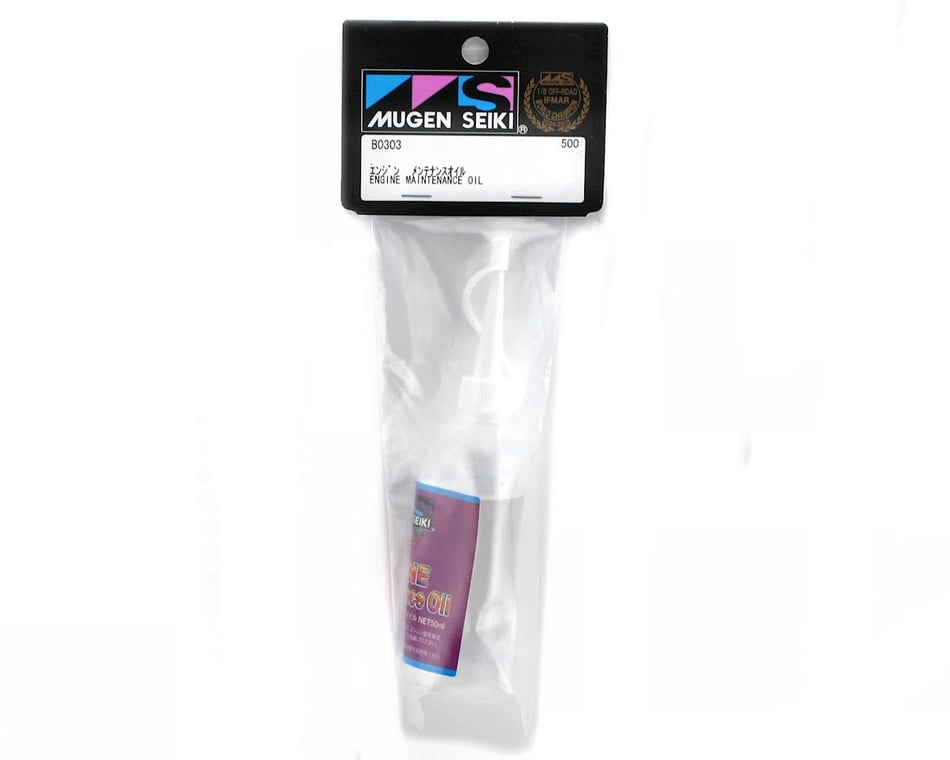 This is a 50ml bottle of Mugen Engine Maintenance oil. If you are not going to be running your engine for a while it is always a good idea to put some maintenance oil inside the engine to avoid corrosion from moisture. The best way to get after run oil into your engine is to remove the back plate of the engine and put some inside, then close up the engine and turn it over in your hand. Another great way is to feed the oil into the carburetor and turn over the engine on your starter box to get the oil to spread evenly through the inside of the engine.